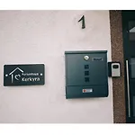 Guests, staying at Haus Kerkyra Villa, can use an equipped kitchenette with an electric kettle, a fridge, and kitchenware to prepare home-cooked meals.